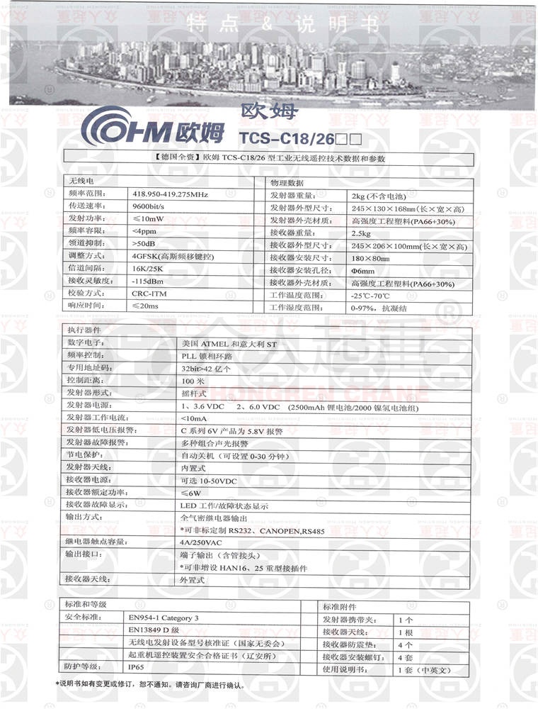 摘要: 歐姆無線遙控器TCS-C18/26技術參數